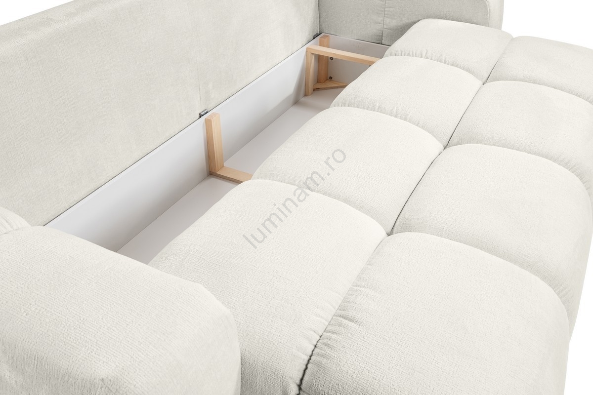 • Canapeaua dispune de un spațiu de depozitare încăpător pentru păstrarea lenjeriilor și a altor articole sezoniere.
