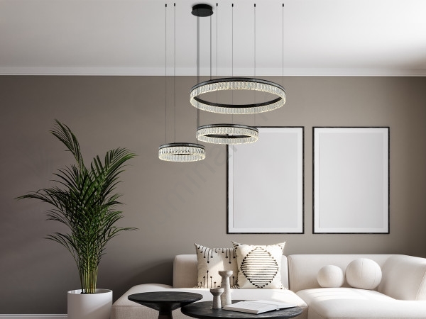 • Candelabru LED reglabil din cristal THALIA, suspendat pe cablu, 120W/230V, 3000-6000K + telecomandă