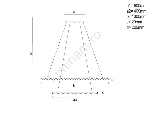 • Lustră LED reglabilă suspendată pe cablu, 90W/230V, 3000-6500K, Ø 60 cm + telecomandă