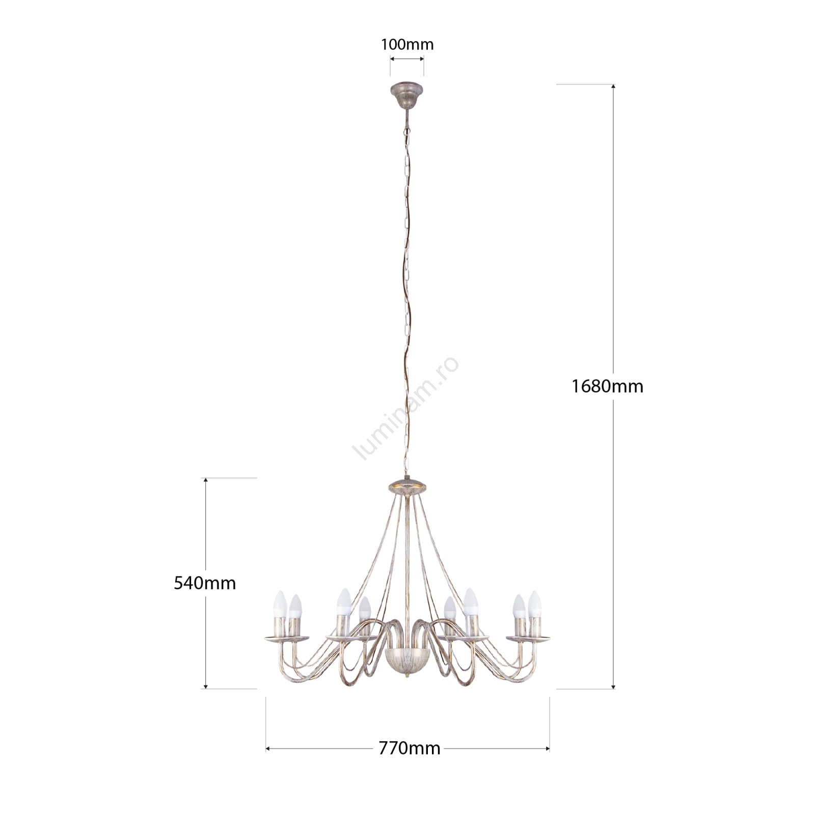Candelabru pe lanț MALBO 8xE14/10W/230V alb/auriu/patină