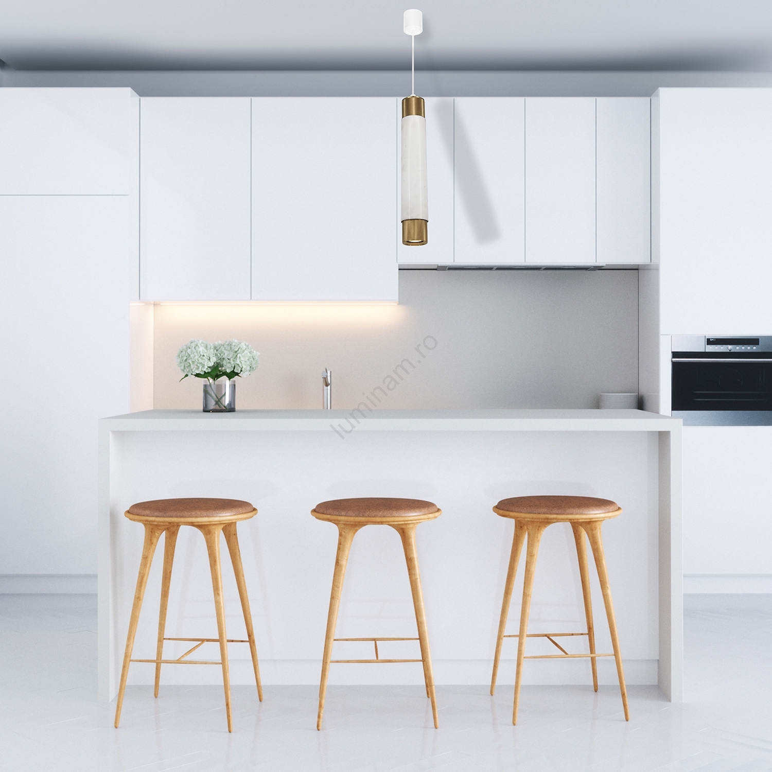 Candelabru pe șnur Marmură alb/alamă 1xGU10/8W/230V
