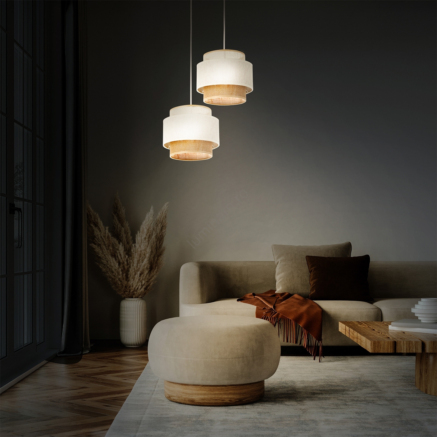 • Lustră BOHO pe cablu, 2xE27/60W/230V, crem/jută
