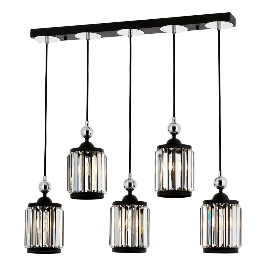 Candelabru suspendat pe cablu CRYSTALLINE, 5 x E27, max. 40 W, 230 V, negru