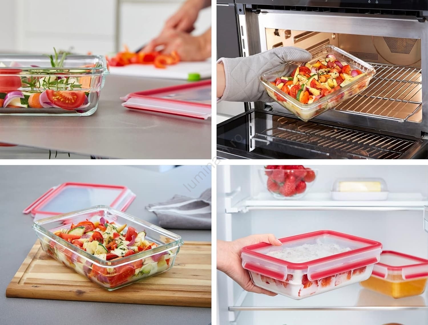 Caserolă Tefal 0,8 l MSEAL GLASS roșu/sticlă