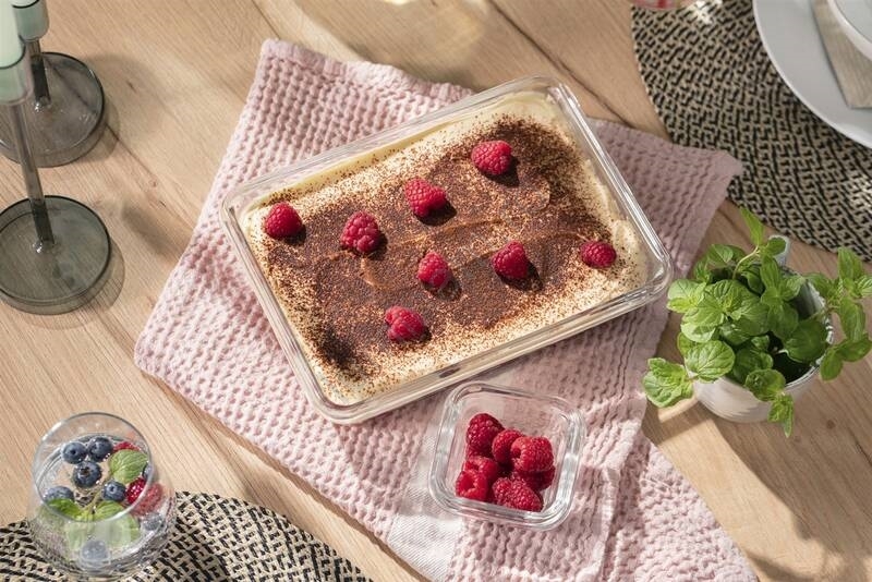 • Datorită faptului că este fabricată din sticlă termorezistentă, caserola poate fi folosită și în cuptor, astfel încât este potrivită și pentru serviciu sau călătorii.