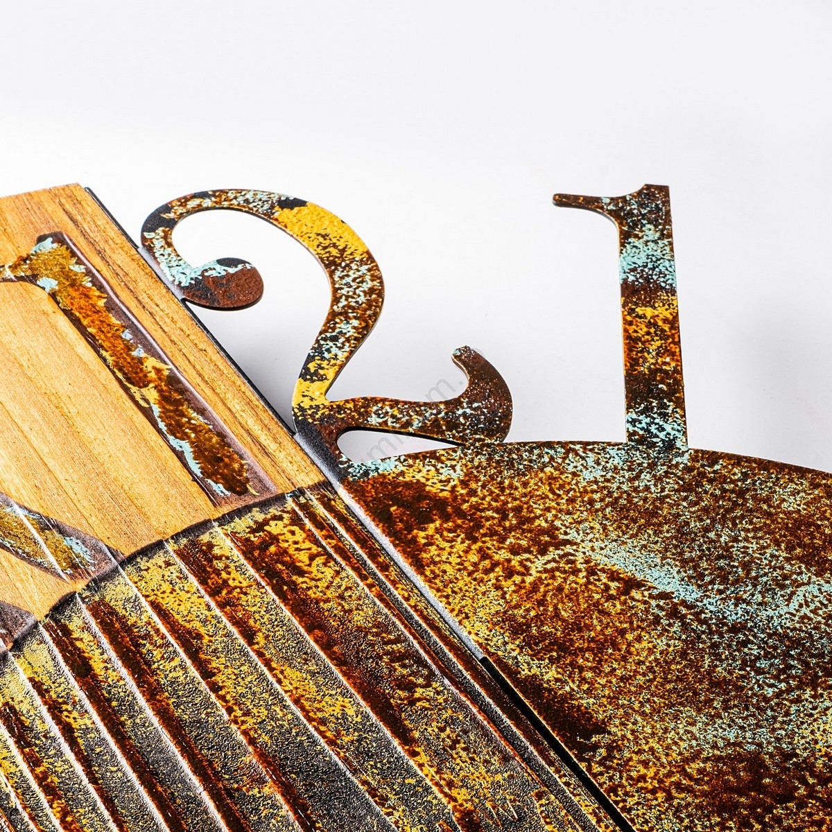 • Motivul pe lemn este gravat cu laser, iar părțile metalice sunt fixate pe lemn.