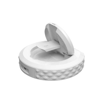Ceas deșteptător cu ecran LCD și încărcător wireless Qi 27W/9V 220 mAh alb