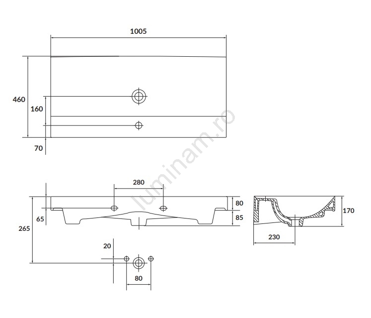 • Bateria pentru lavoar și setul de scurgere nu sunt incluse în pachet.