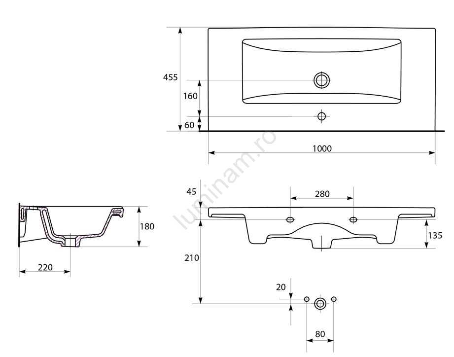 • Lavoar modern și elegant, prevăzut cu preaplin și orificiu pentru baterie.
