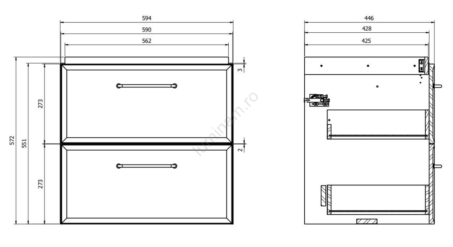 • Dulapul are două sertare cu închidere amortizată - soft-close.