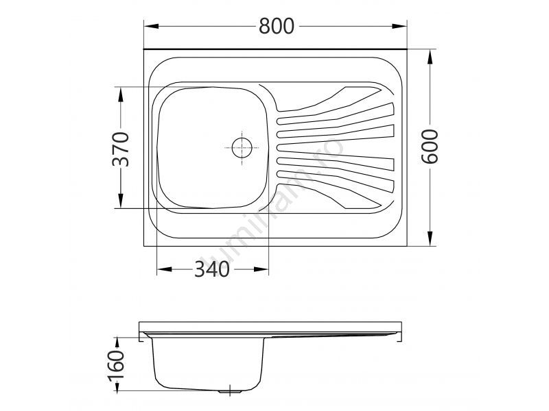 • Conținutul pachetului: chiuvetă din oțel inoxidabil, scurgere 1 1/2, sifon cu racord pentru mașina de spălat vase, dop.