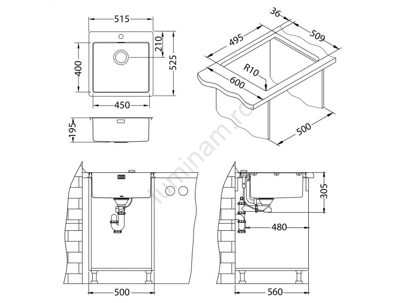 • Pachetul include: chiuvetă din oțel inoxidabil, accesorii de montare și garnituri, ventil 3 1/2 cu sită și sifon pentru chiuvetă cu racord pentru mașina de spălat vase.