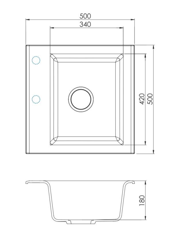 • Pachetul include: chiuvetă din granit, cleme pentru montare, ventil 3 1/2 cu sită, sifon pentru chiuvetă cu racord pentru mașina de spălat vase și comandă excentrică pentru scurgere.