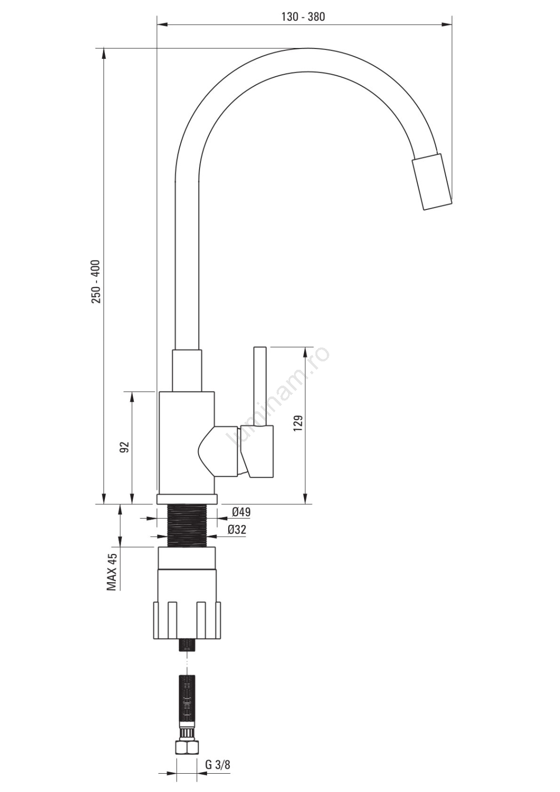 • Chiuvetă de bucătărie Deante ZQJN5103 EVORA 50x50 cm + baterie de chiuvetă cu pipă flexibilă granit/bej