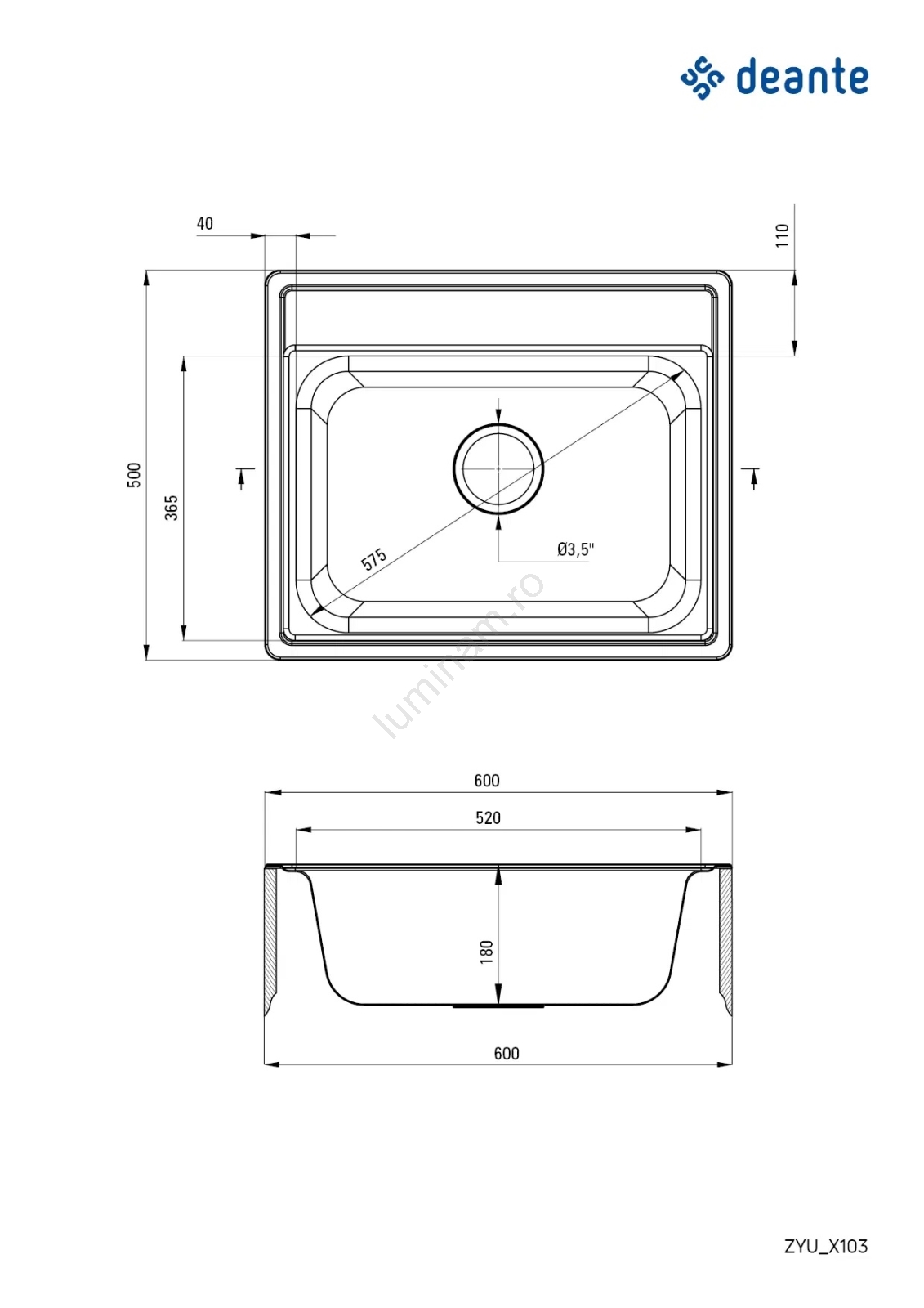 Deante ZYU_0103 - Chiuvetă de bucătărie SOUL 50x60 cm satin