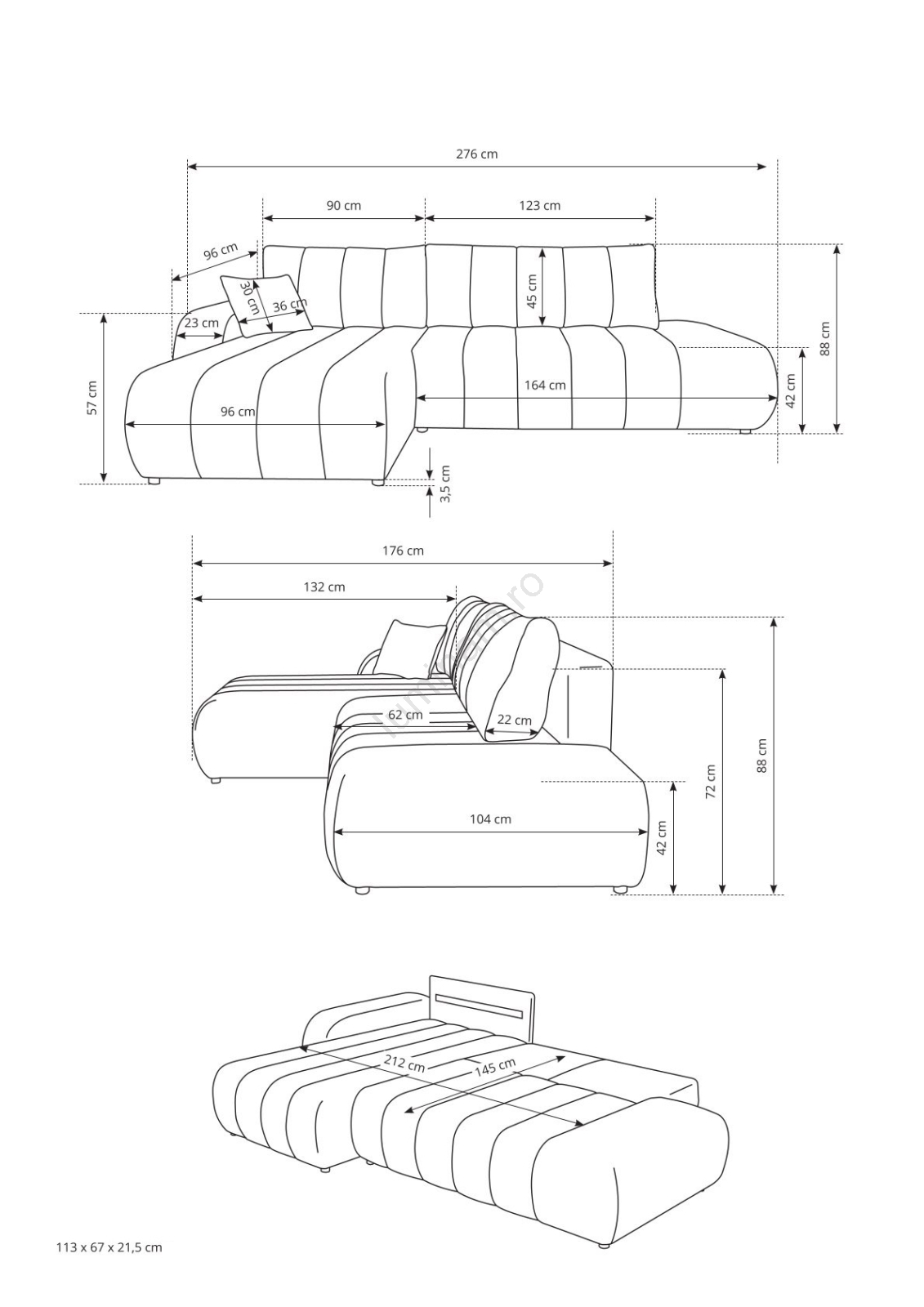 • Canapeaua dispune de un spațiu de depozitare generos pentru lenjerii de pat și alte articole sezoniere.