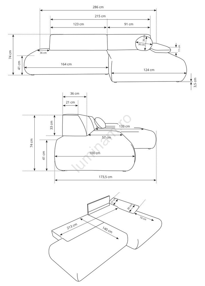 • Canapeaua dispune de un spațios compartiment de depozitare pentru păstrarea lenjeriilor și a altor articole sezoniere.