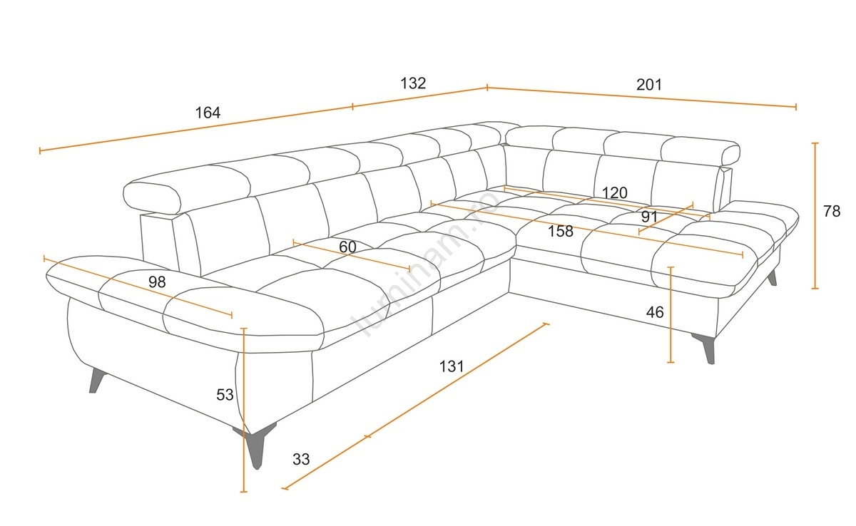 • Designul elegant este completat de cusăturile moderne de pe șezut și spătar, conferind colțarului un aspect sofisticat.