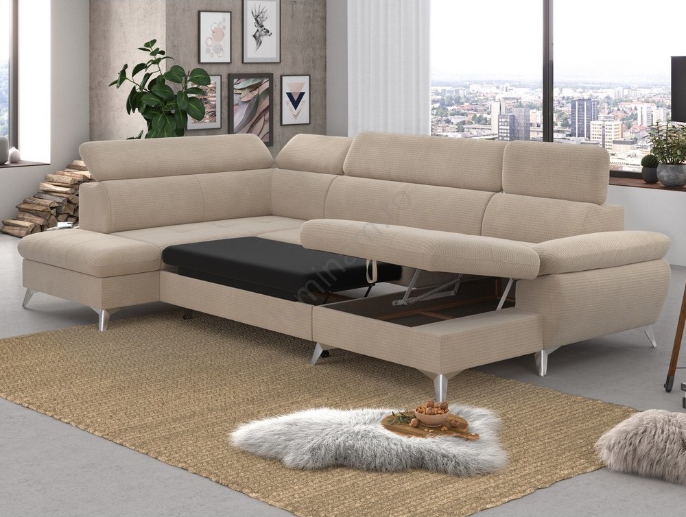 • Canapea colțar extensibilă în formă de U CATANIA cu spațiu de depozitare, versiunea stânga, culoare bej
