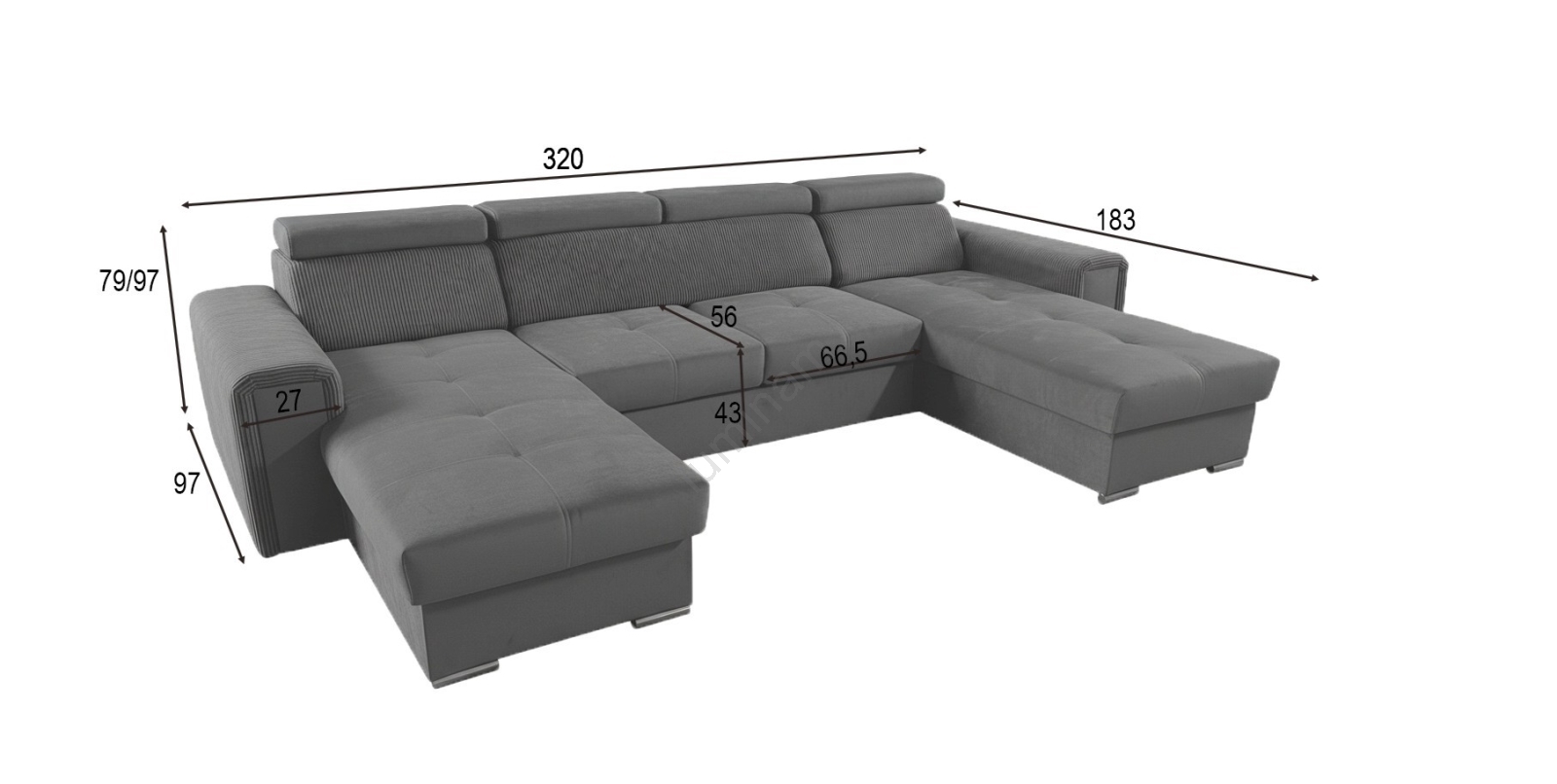 • Canapea colțar spațioasă în formă de U oferă atât confort, cât și un design elegant.