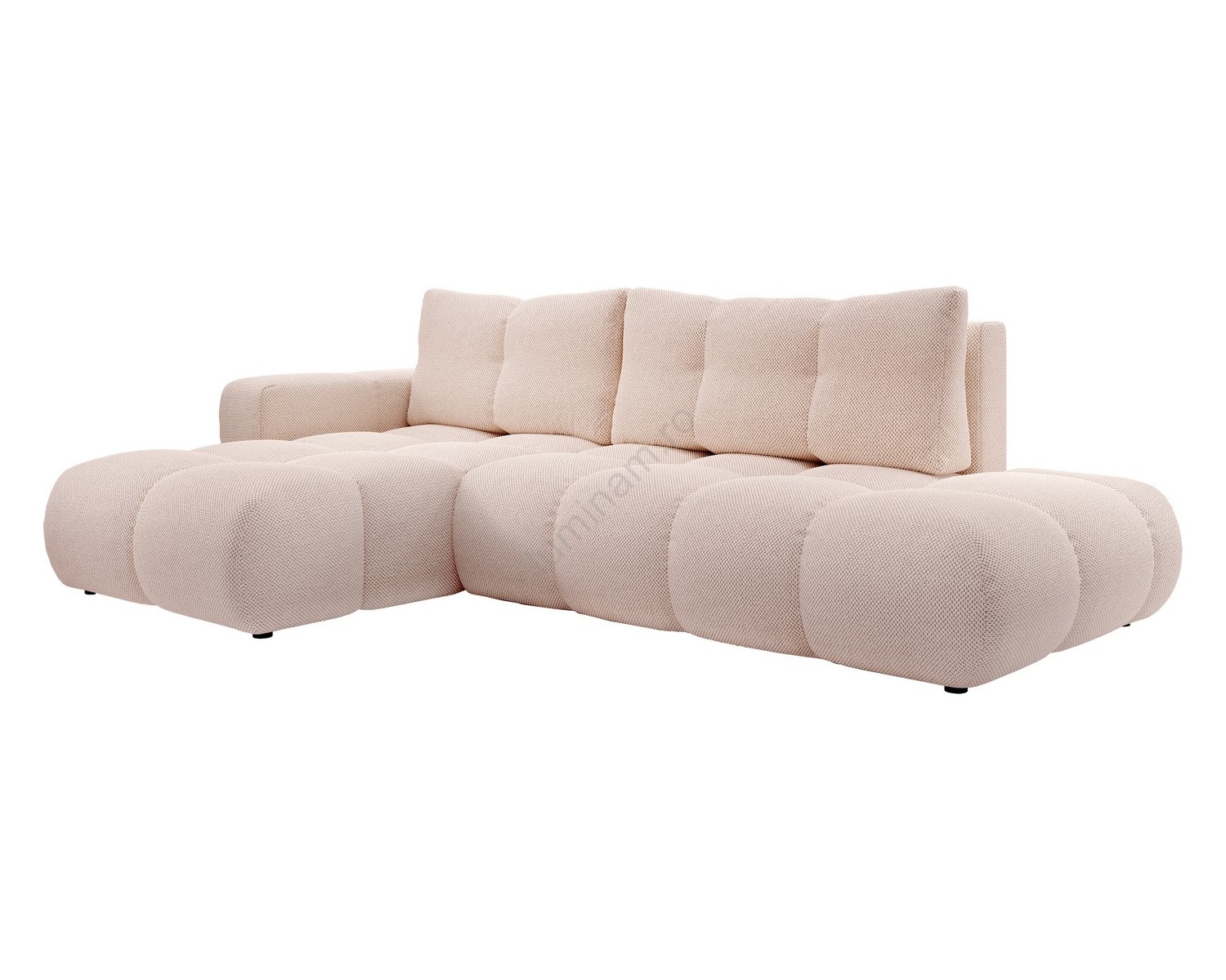 • Colțar extensibil ALMADA, tapițat, în formă de L, cu spațiu de depozitare, partea dreaptă, roz