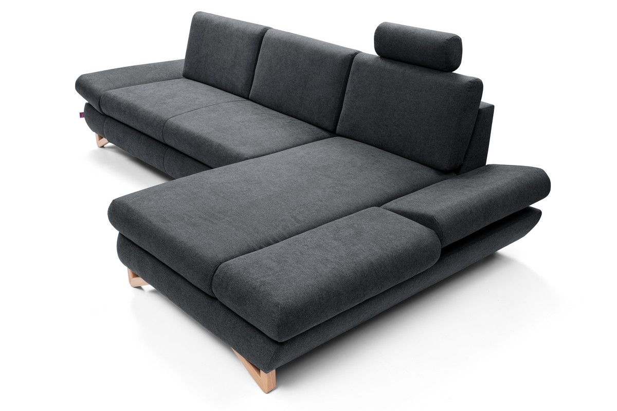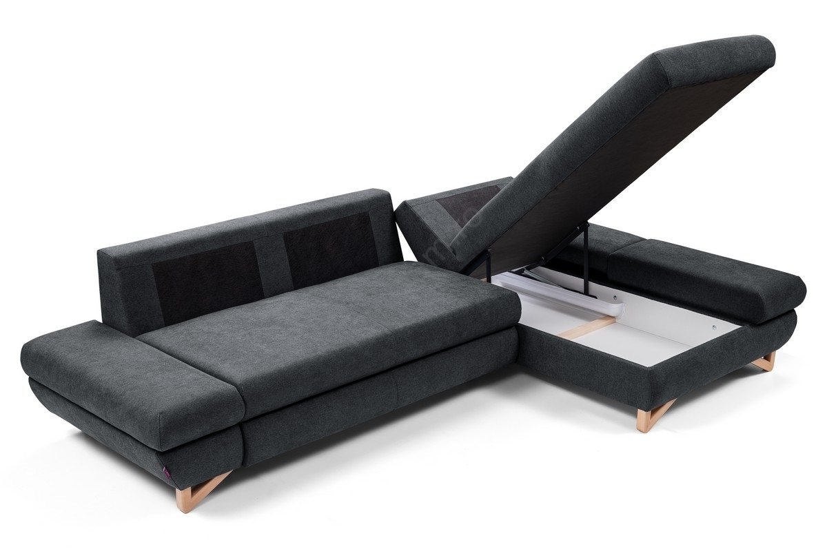 Colțar extensibil tapițat AVESTA, în formă de L, cu spațiu de depozitare, pe partea dreaptă, antracit