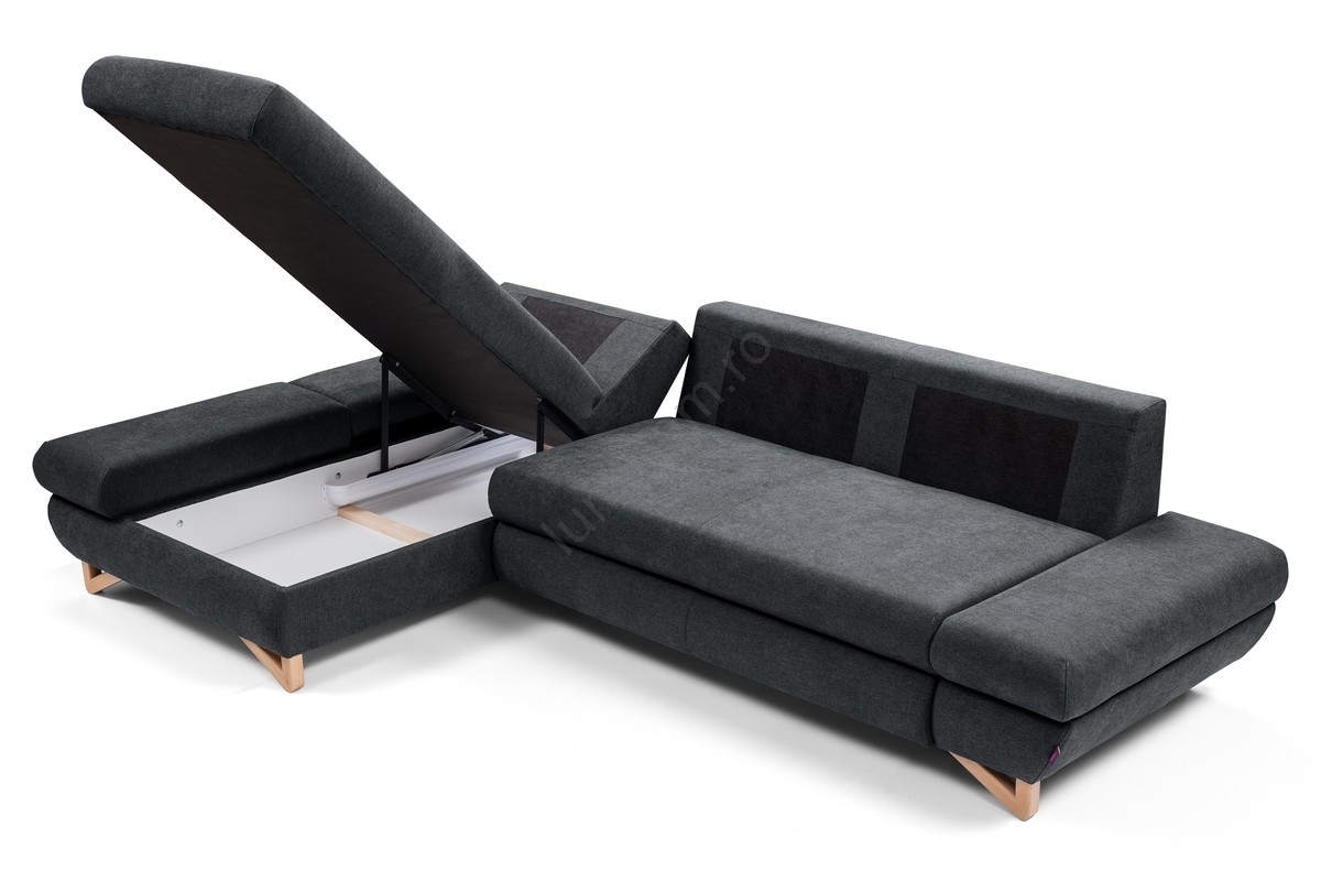 • Colțar extensibil tapițat AVESTA, formă L, cu spațiu de depozitare, orientare pe stânga, antracit