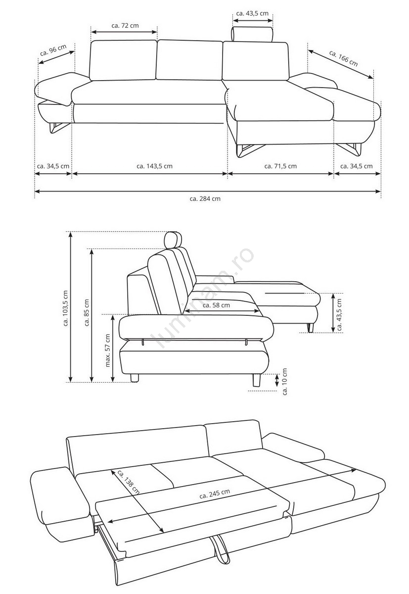 • Canapeaua dispune de un spațiu generos de depozitare pentru lenjerii de pat și alte articole sezoniere.