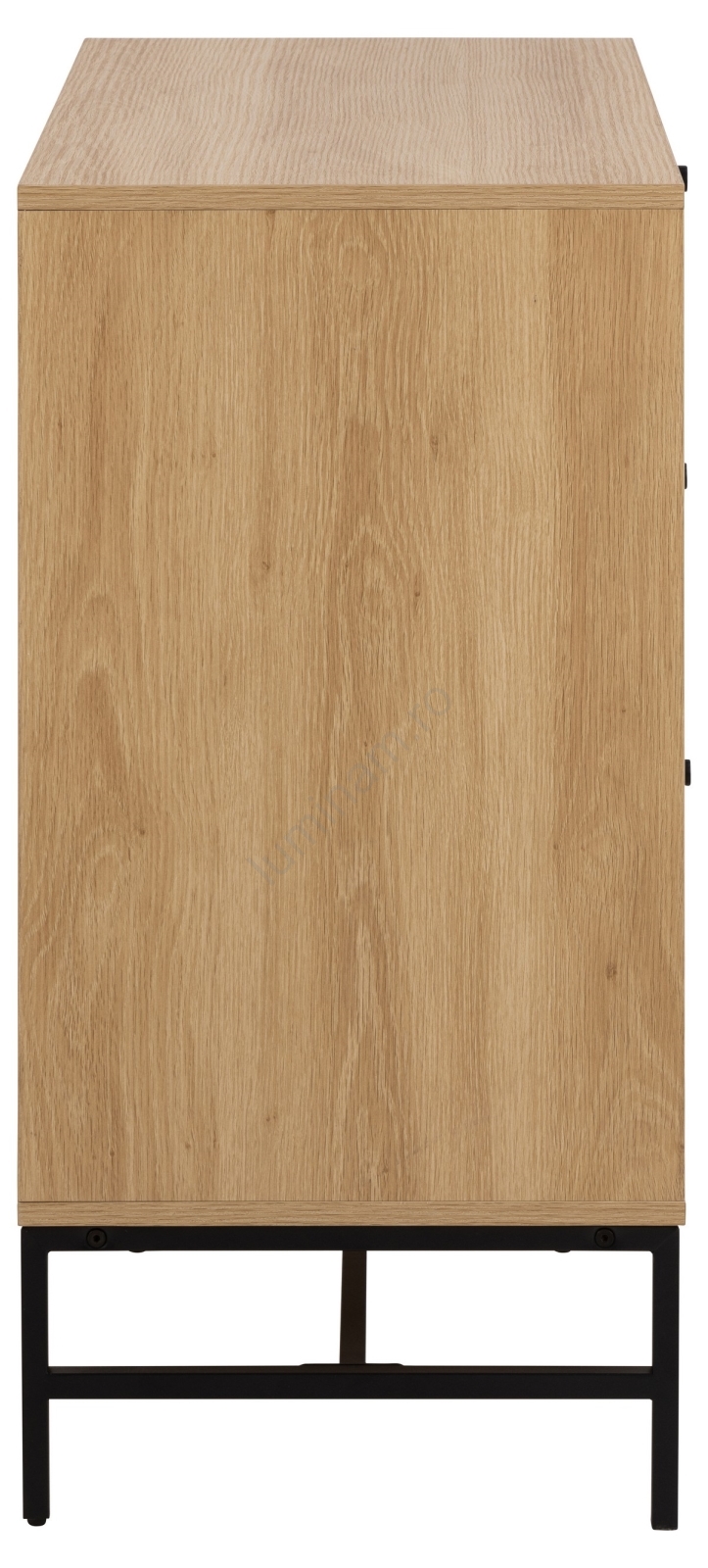 • Cadru, 3 sertare și rafturi din melamină texturată craft, bază din oțel vopsit prin pulbere, negru mat, cu finisaj texturat.