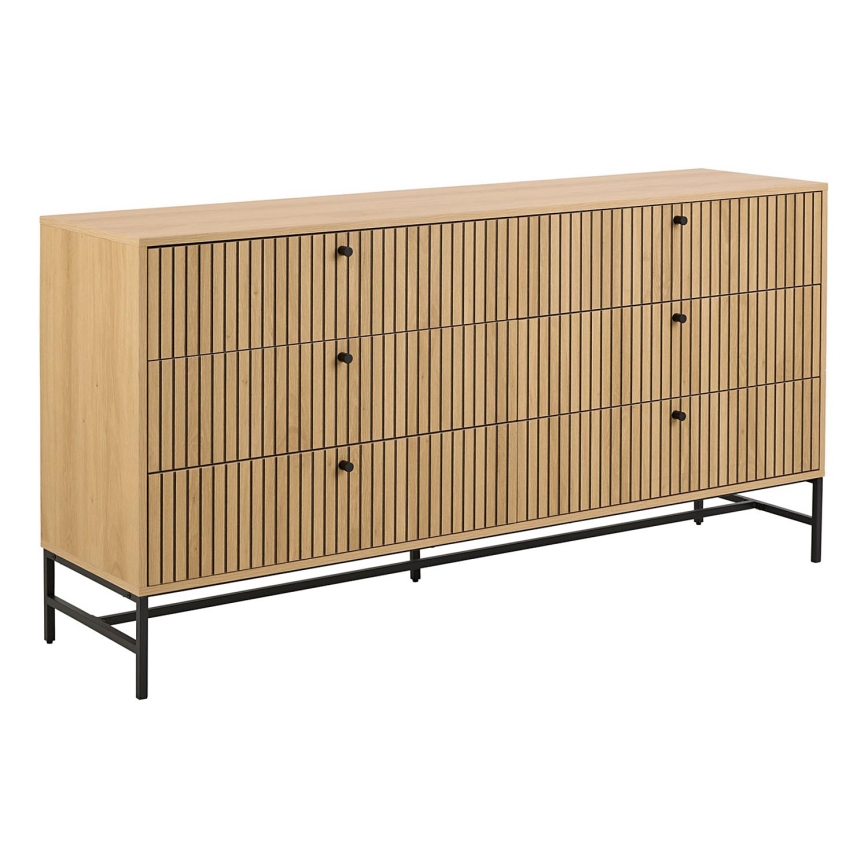 • Această comodă cu aspect de stejar și front cu lamele va oferi holului dumneavoastră stil și funcționalitate.