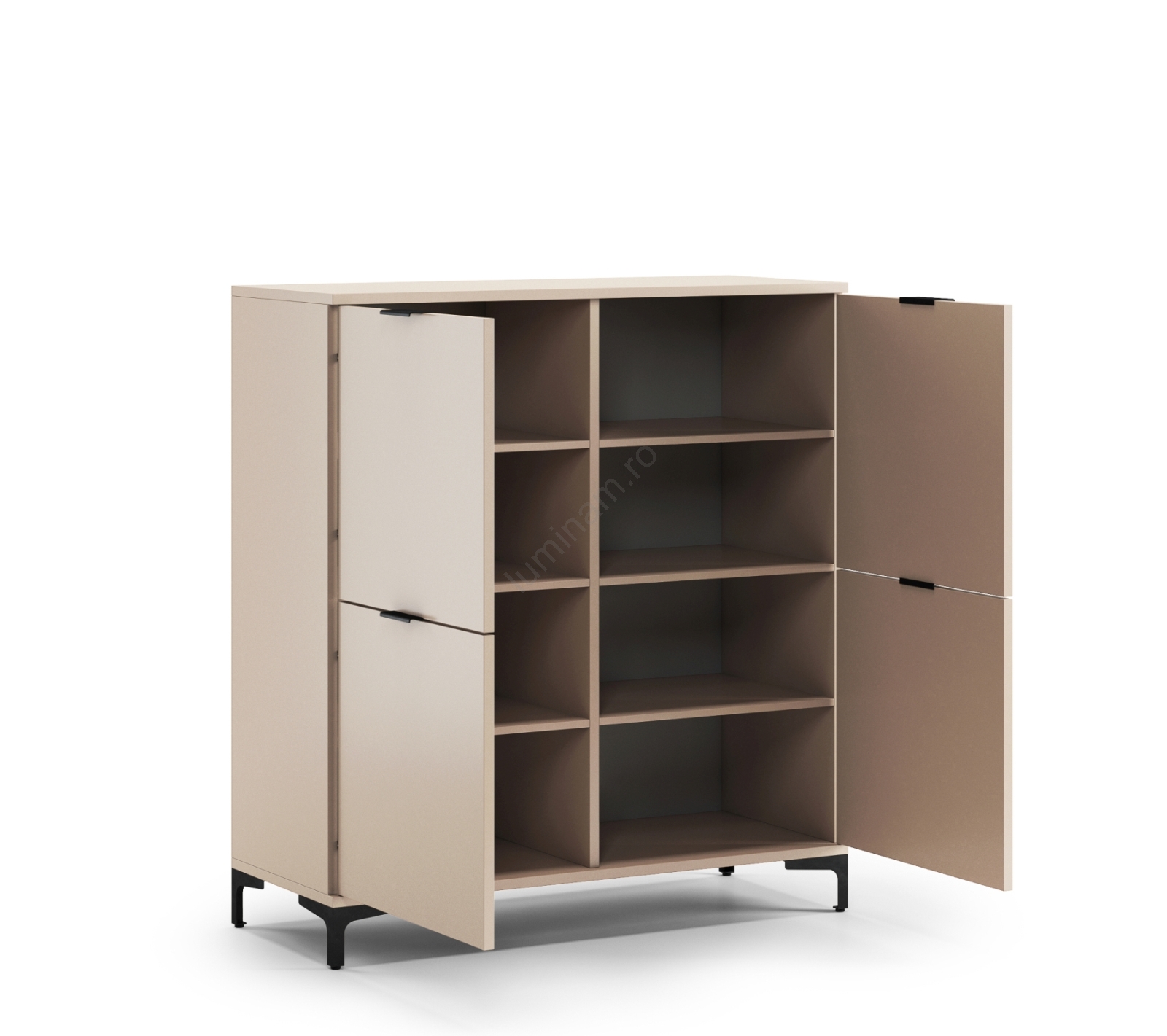 • Mobilierul este realizat în stil loft și se remarcă prin picioare și mânere metalice, care îi conferă un aer industrial suplimentar.