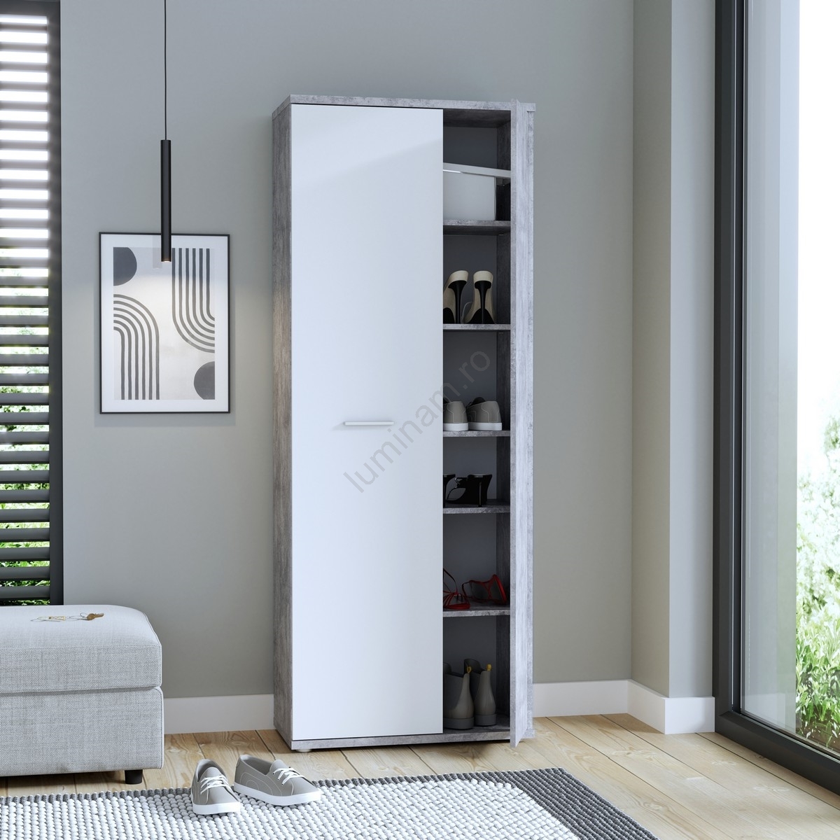 • Comodă/Pantofar SIMO alb/gri beton