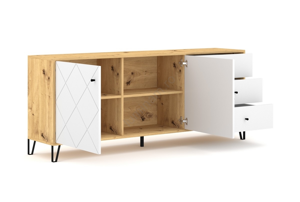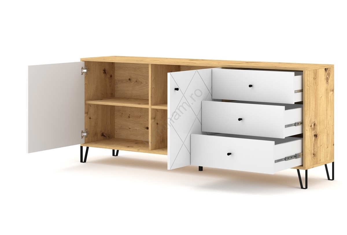 Comodă SULA, stejar artisan/alb