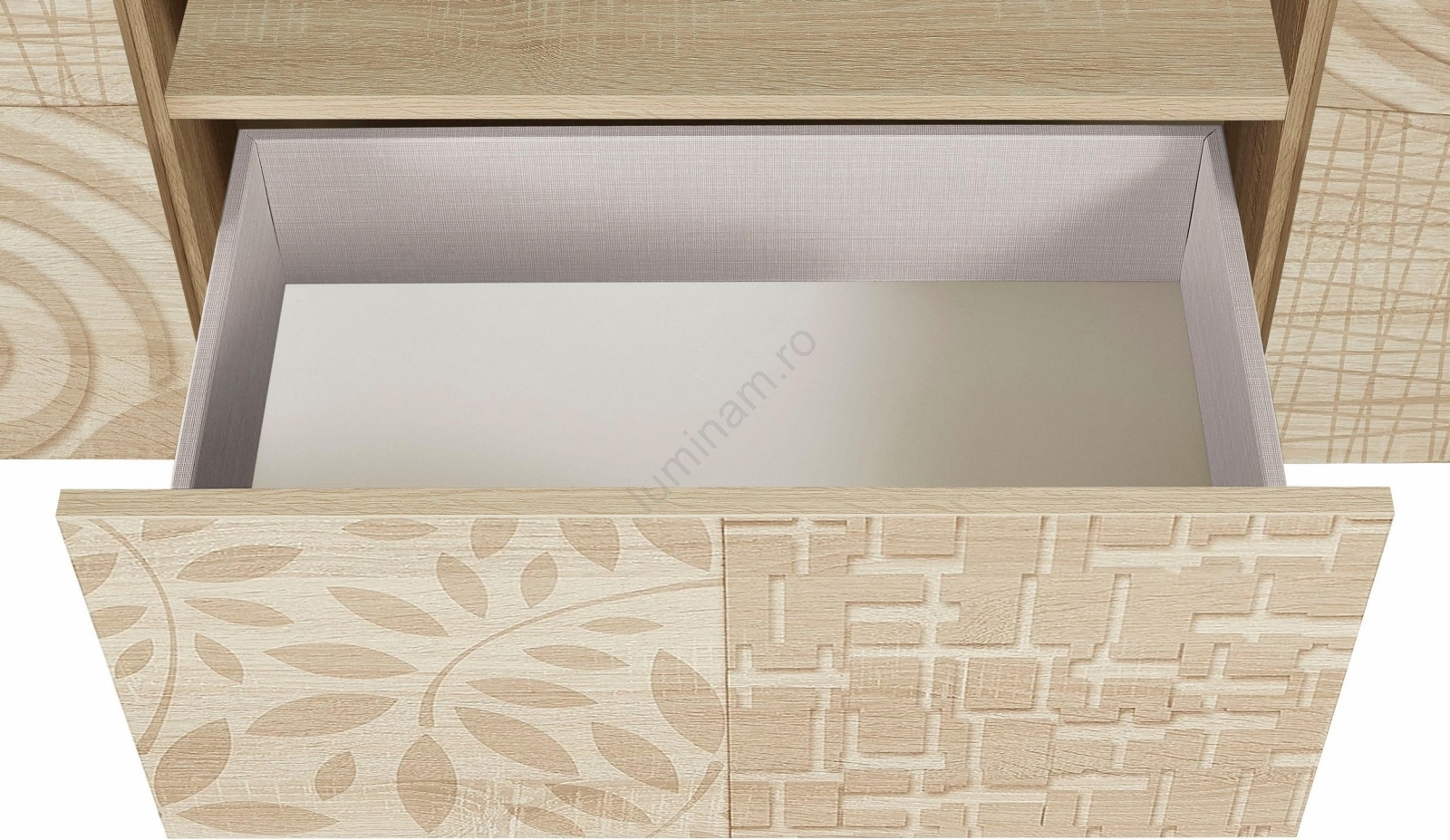 • Compartimentele, sertarul și rafturile oferă spațiu pentru cărți, decorațiuni și articole pentru casă.