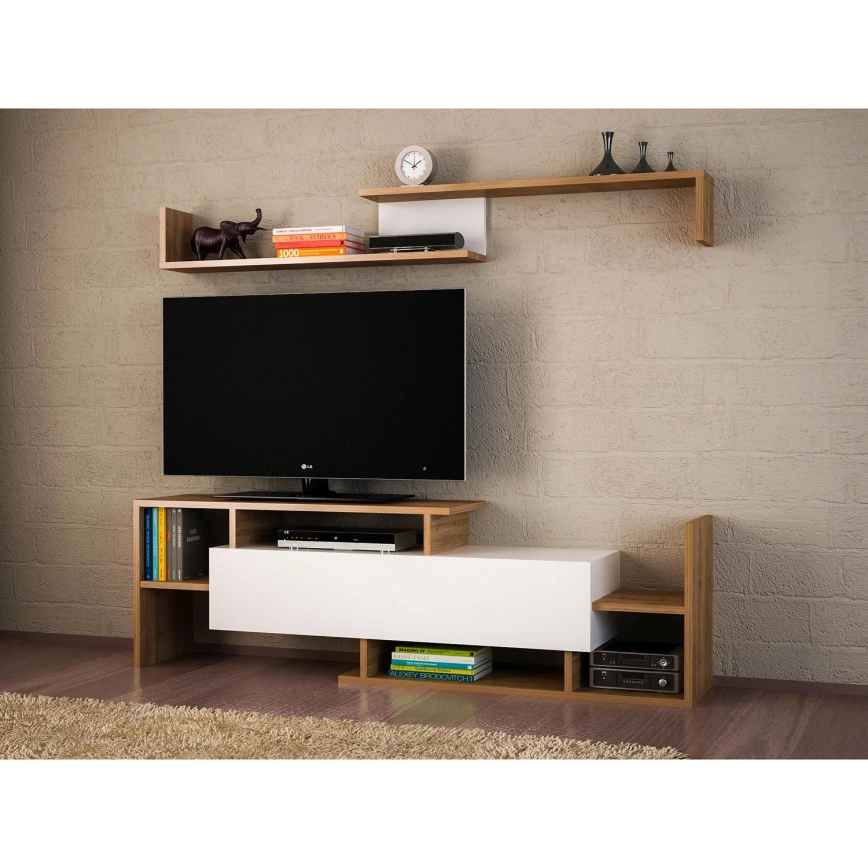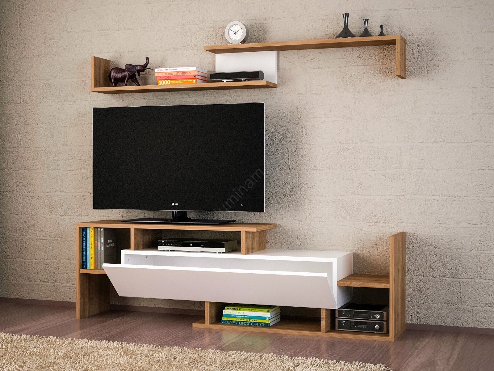 • Include un suport pentru TV cu spațiu de depozitare și o poliță deasupra televizorului.
