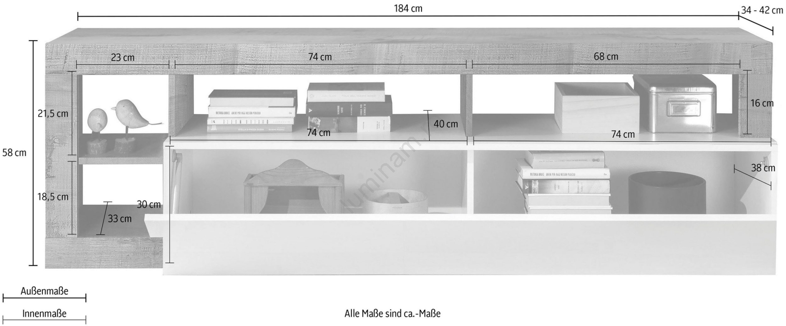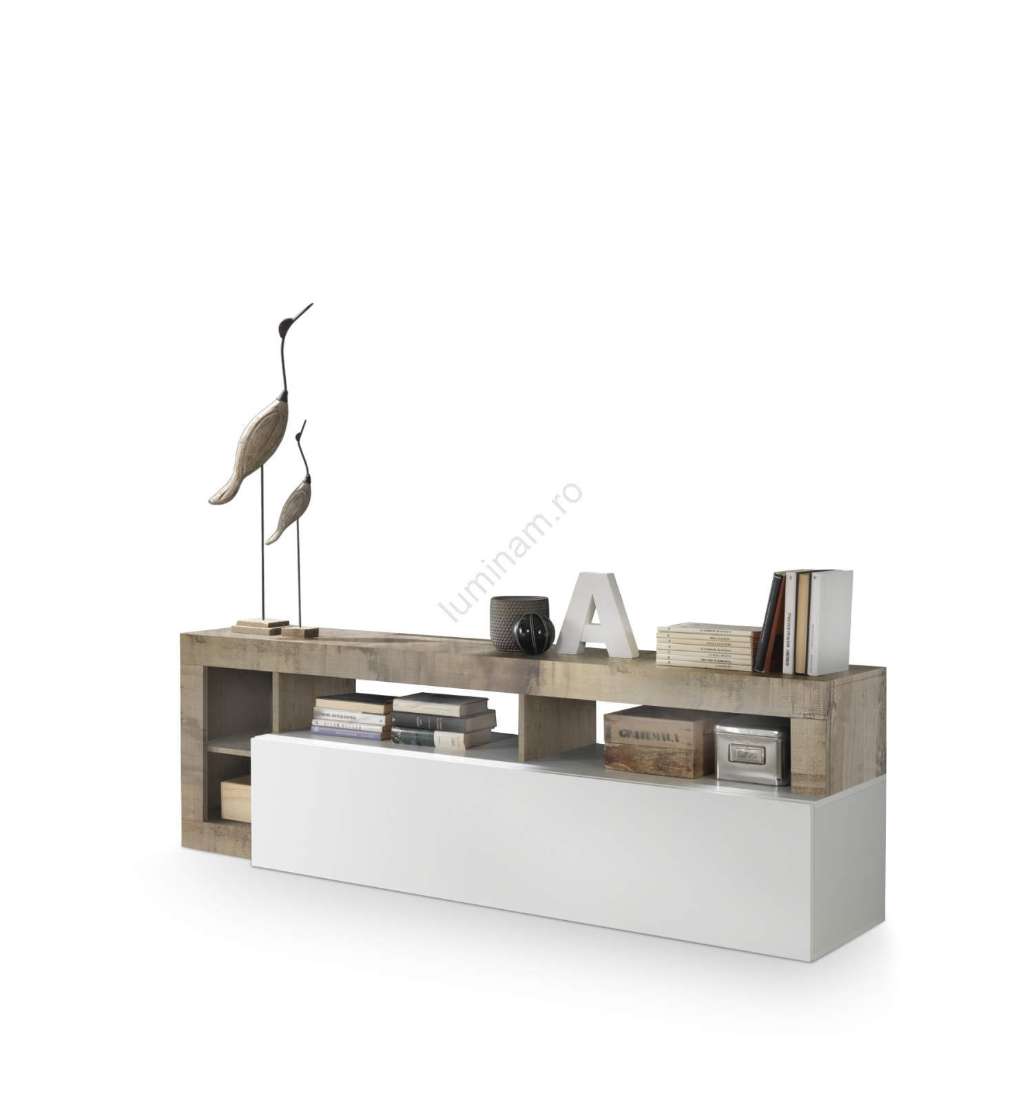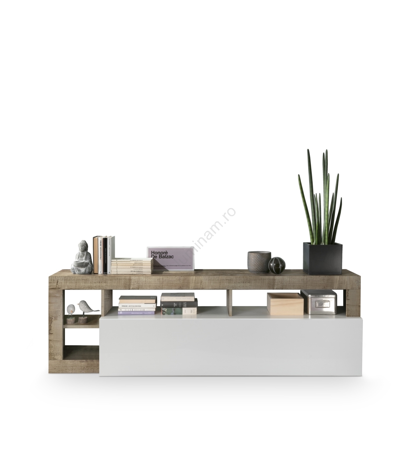 • Compartimentul inferior și rafturile deschise oferă spațiu pentru cărți, decorațiuni și articole pentru casă.