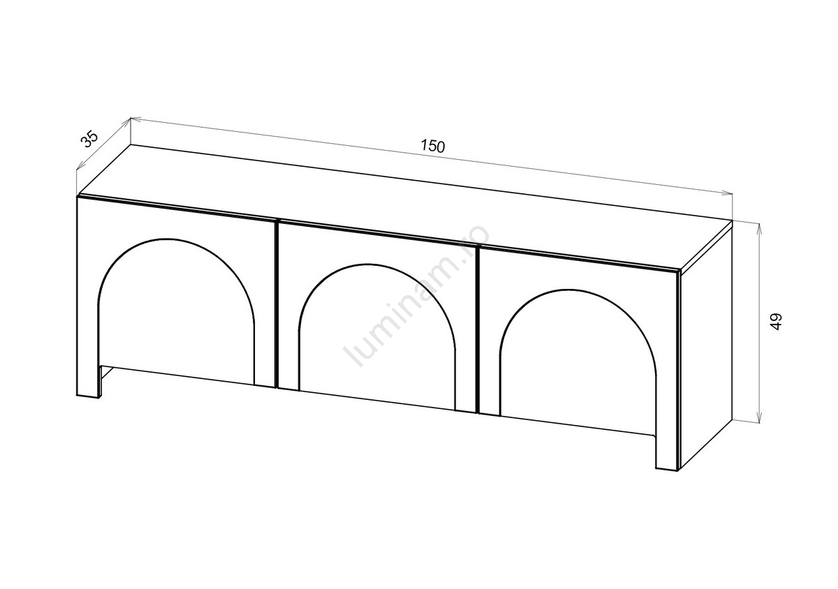 • Dispune de trei uși, fiecare cu un detaliu arcuit ornamentat care conferă o notă de eleganță.