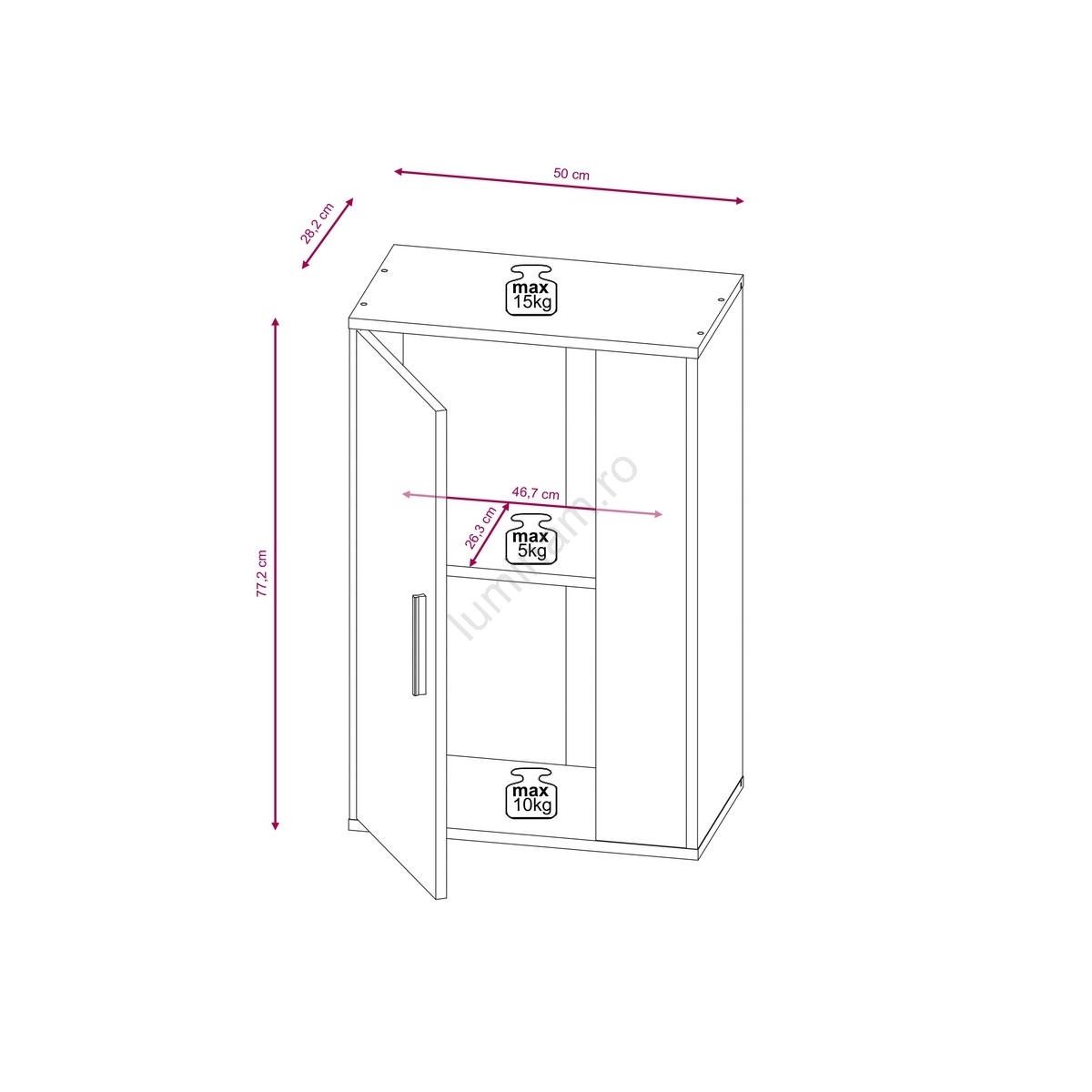 • Cutie nr. 1: 107,5 x 37 x 47 cm (29 kg).
