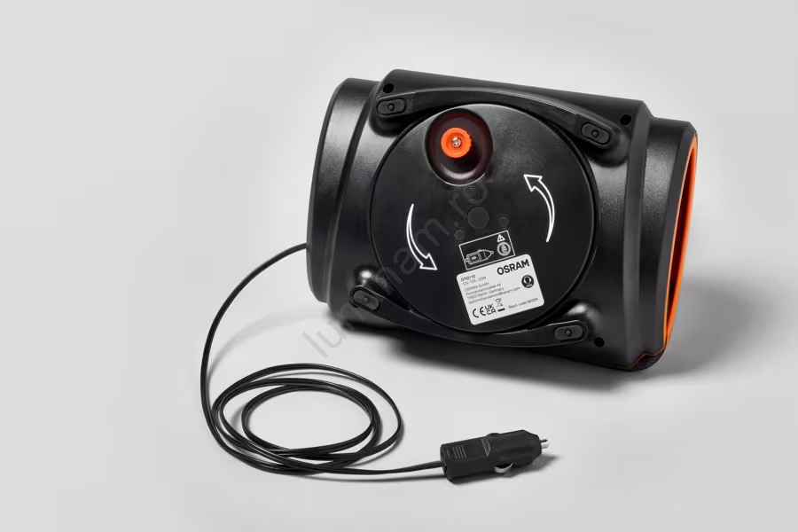 • Cablu de alimentare de 12V, lung de 3 m, cu bobină pentru înfășurare rapidă și simplă, iar capacul integrat al ventilului asigură păstrarea valvei în siguranță.