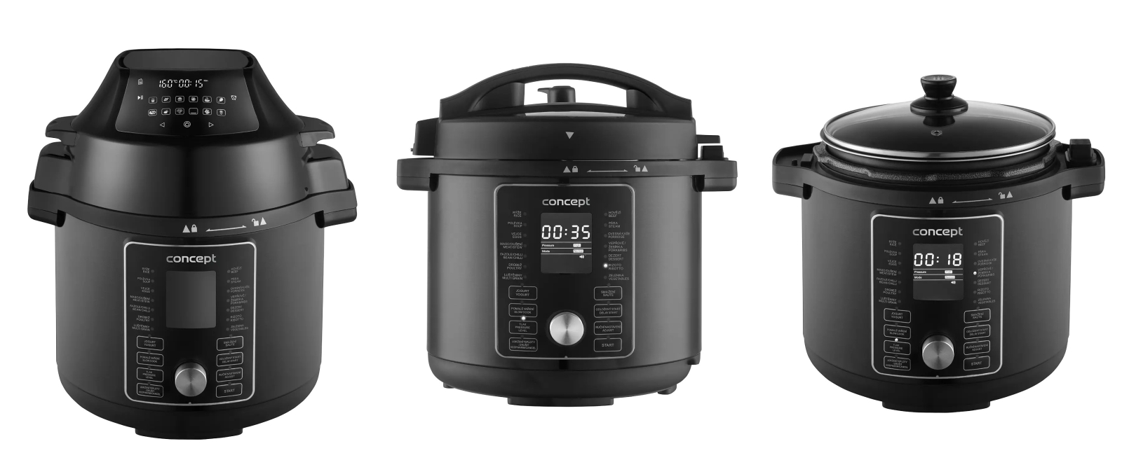 Concept CK8000 - Oală electrică sub presiune multifuncțională și friteuză cu aer cald 5,6 l 11 în 1 1500W/230V negru