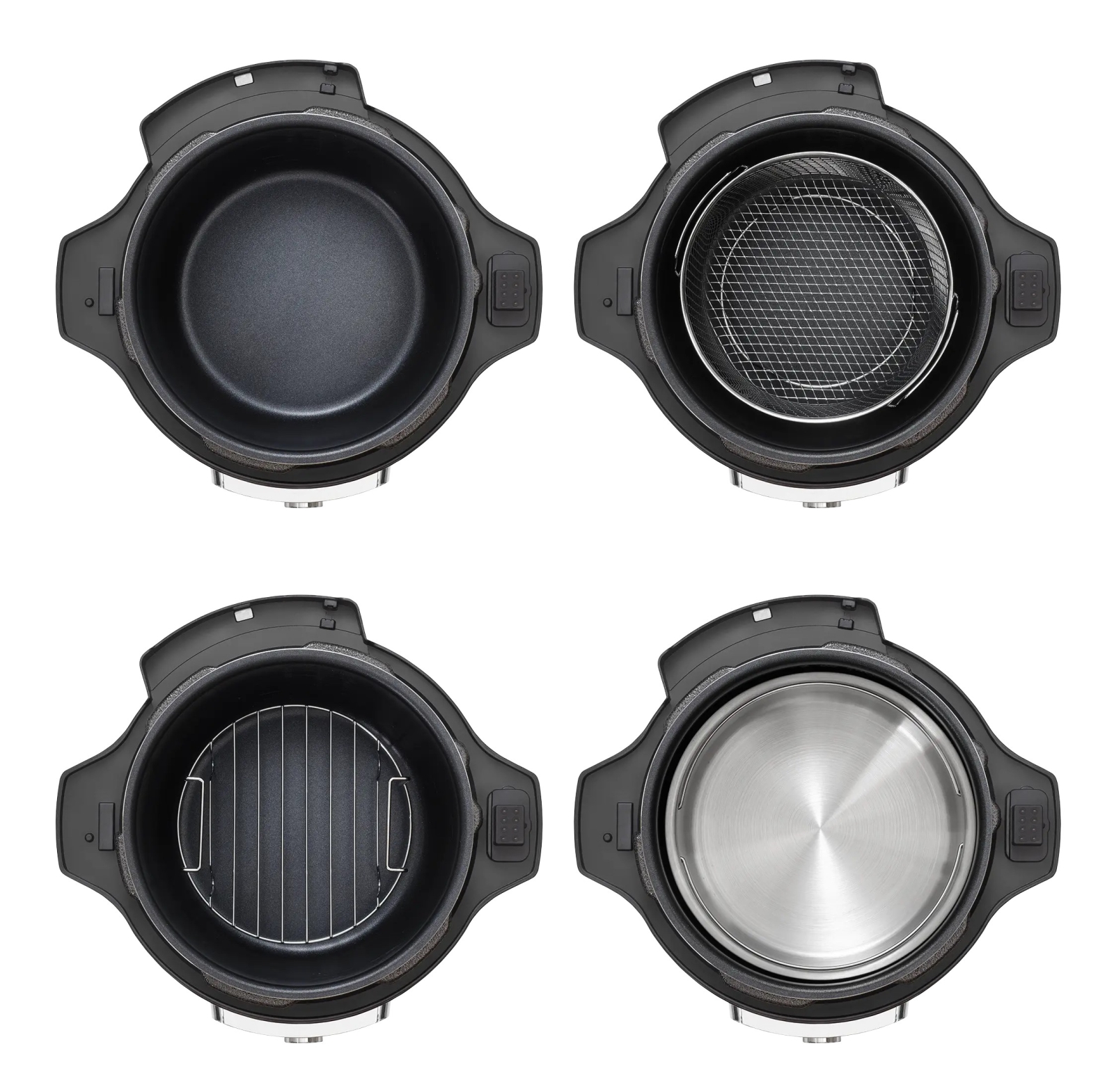 • 11 în 1: aburitor, friteuză cu aer cald, oală sub presiune, slow cooker, oală pentru orez, aparat pentru supe, cuptor, dehidrator, aparat pentru iaurt, tigaie, funcţie de gătit.