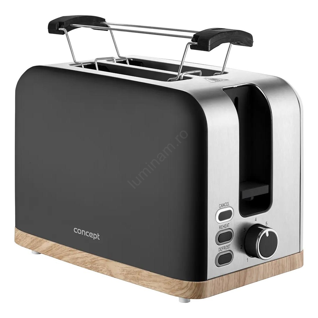 Concept TE2016 - Prăjitor de pâine cu 2 fante și suport pentru chifle, 930W/230V, negru