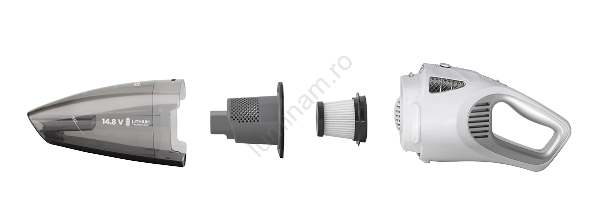 • Datorită bateriei Li-Ion integrate de înaltă calitate de 14,8 V cu o capacitate de 2200 mAh, puteți curăța până la 40 de minute cu o singură încărcare.