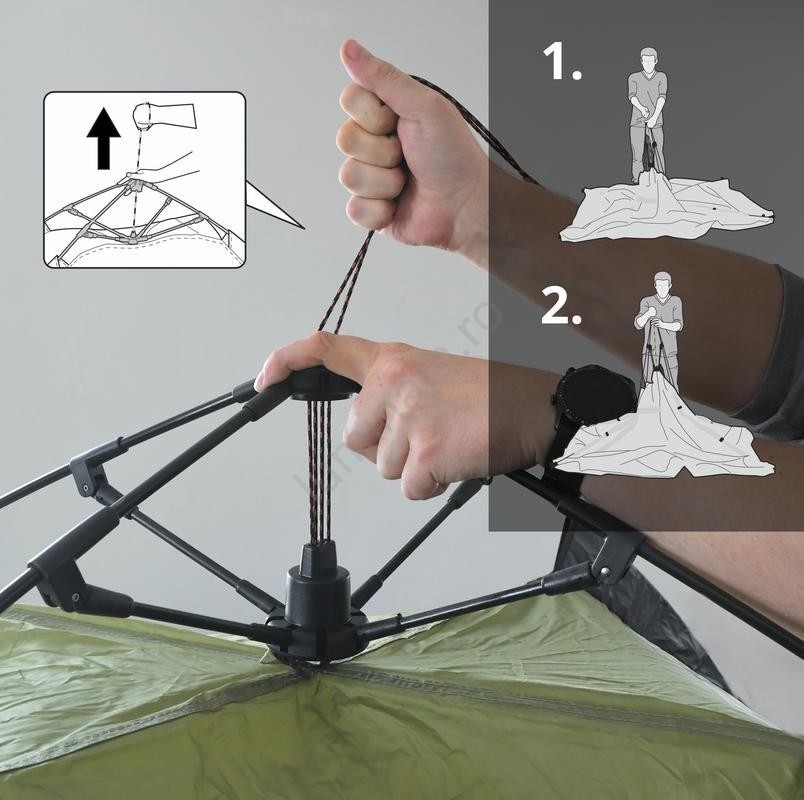 • Pentru pliere, este suficientă slăbirea mecanismului și depozitarea cortului în pachetul de transport.