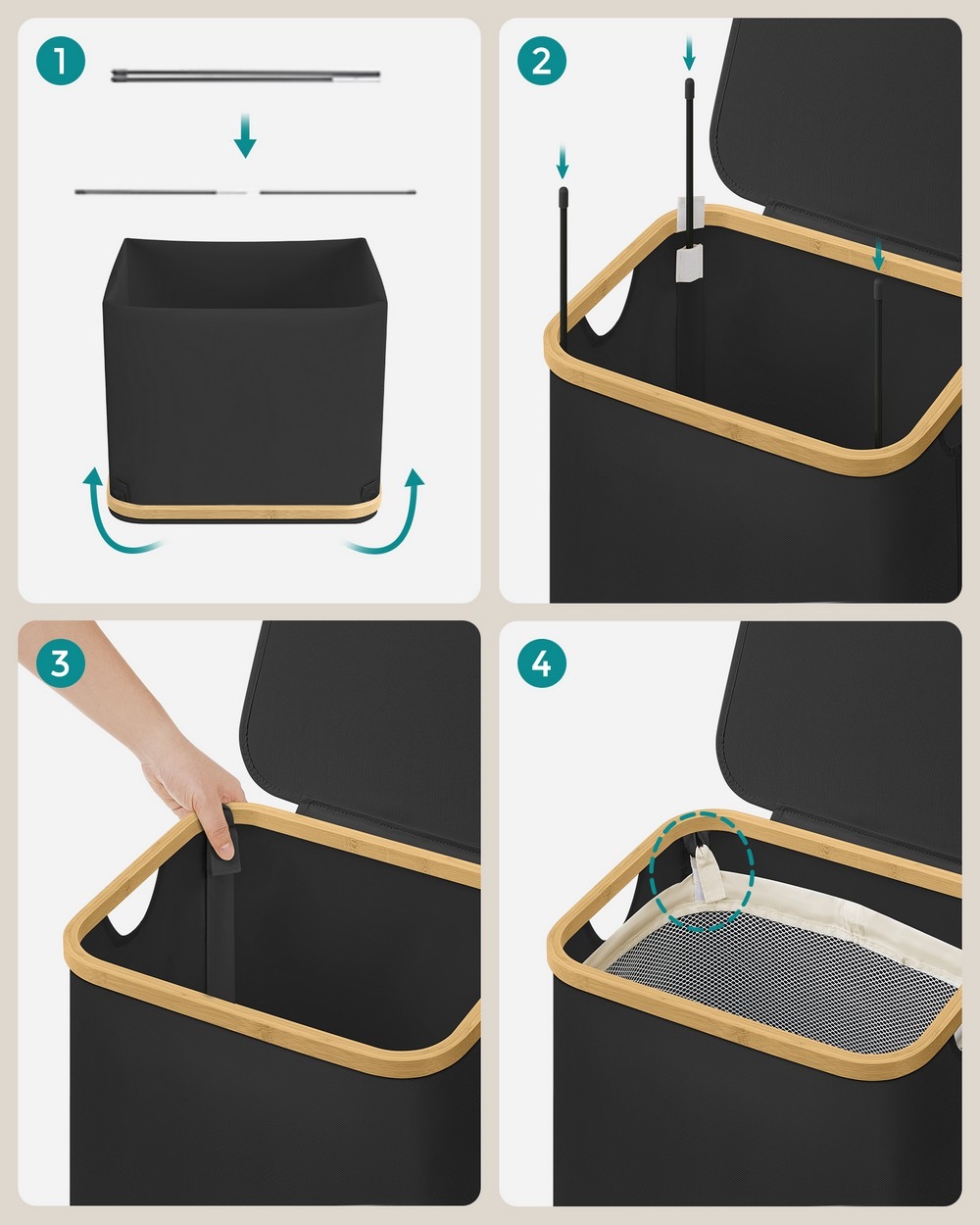 • Capacul se poate deschide și închide cu o singură mână, astfel puteți acoperi rufele cu ușurință - capacul împiedică răspândirea mirosurilor și protejează rufele de praf.