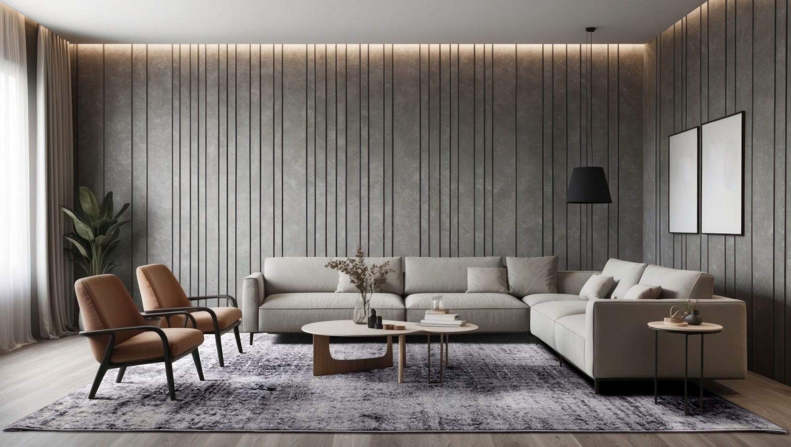 • Are un model abstract în nuanțe de gri, care completează perfect decorul minimalist.