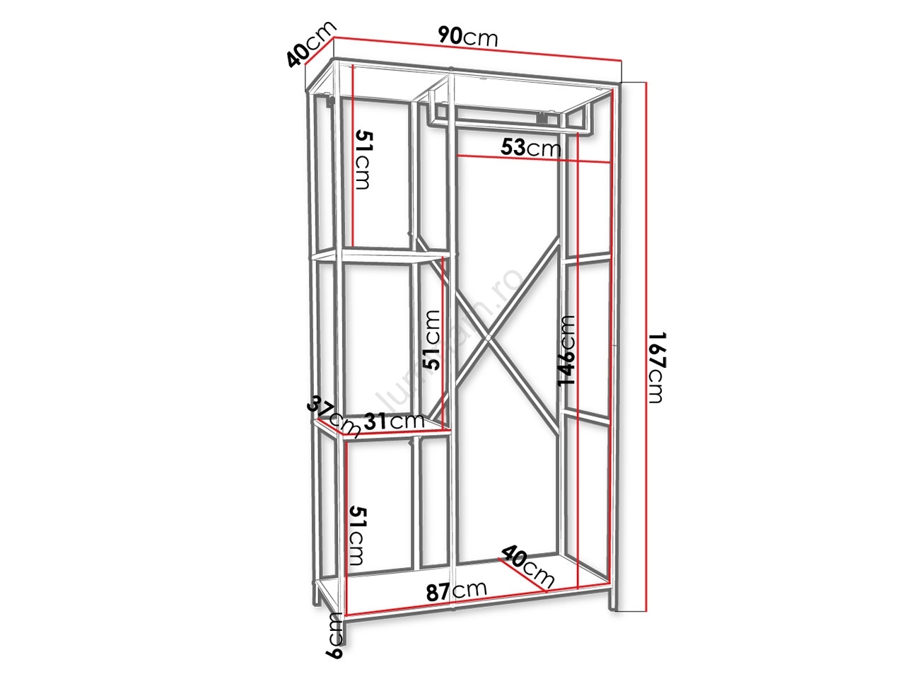 • Potrivit pentru depozitarea jachetelor, hainelor, pantofilor, genților etc.
