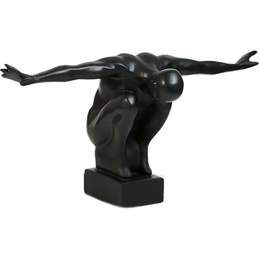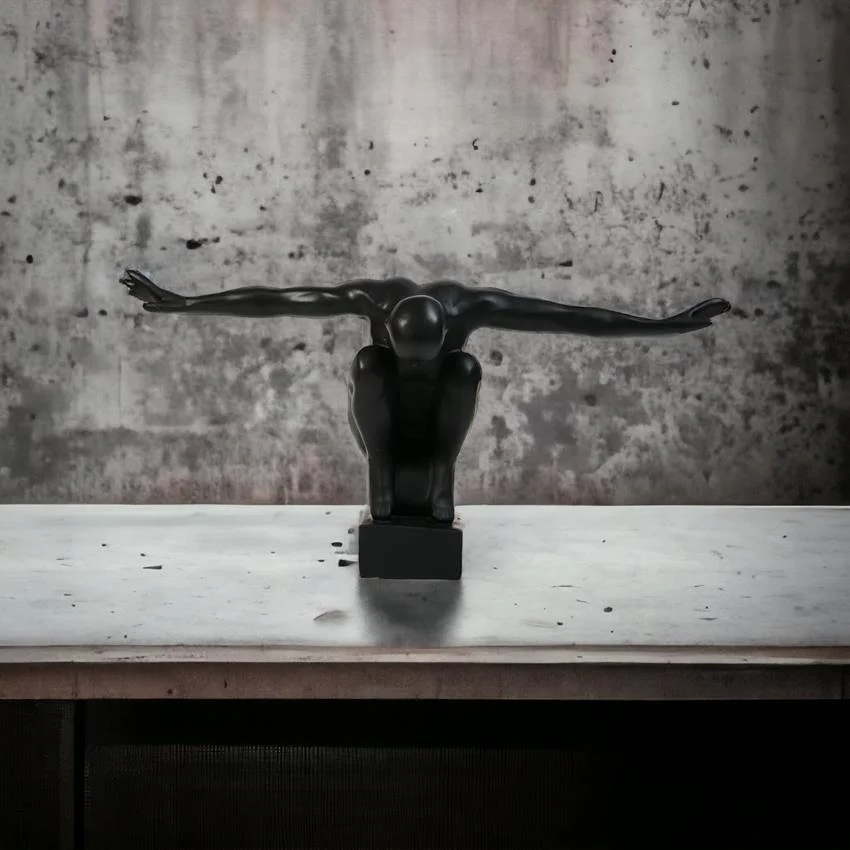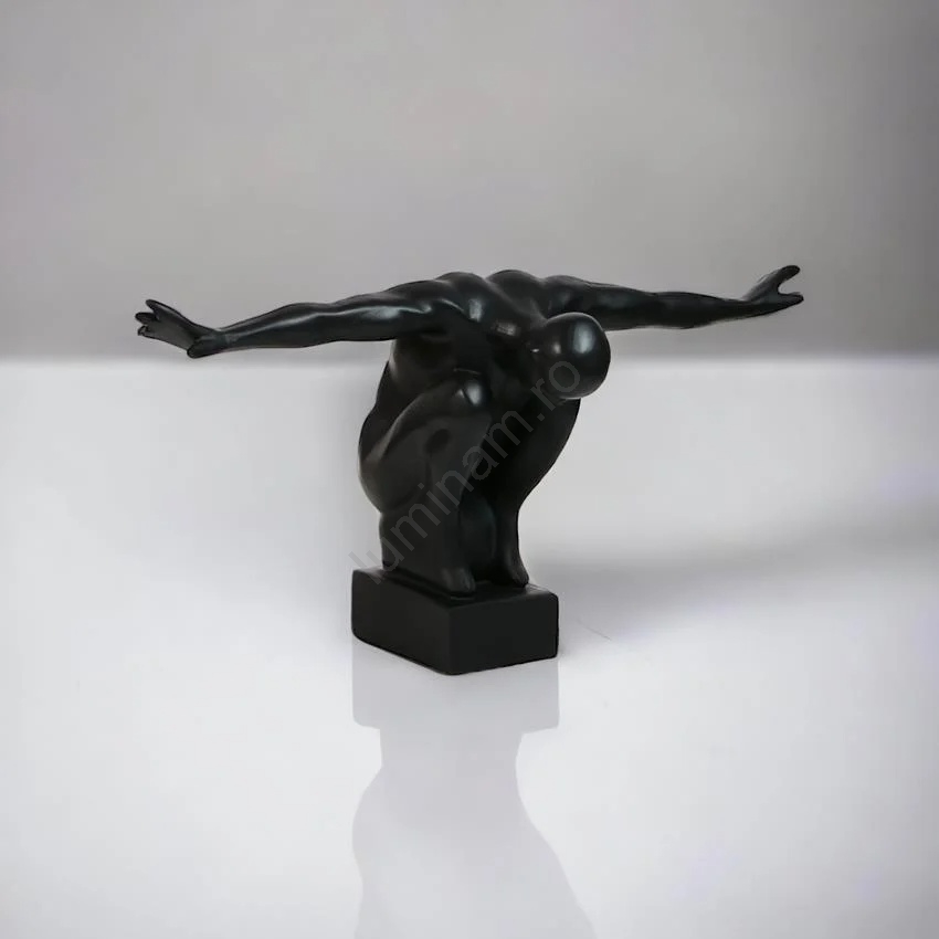 • Decorațiune neagră, elegantă și minimalistă, în formă de siluetă cu brațele întinse.