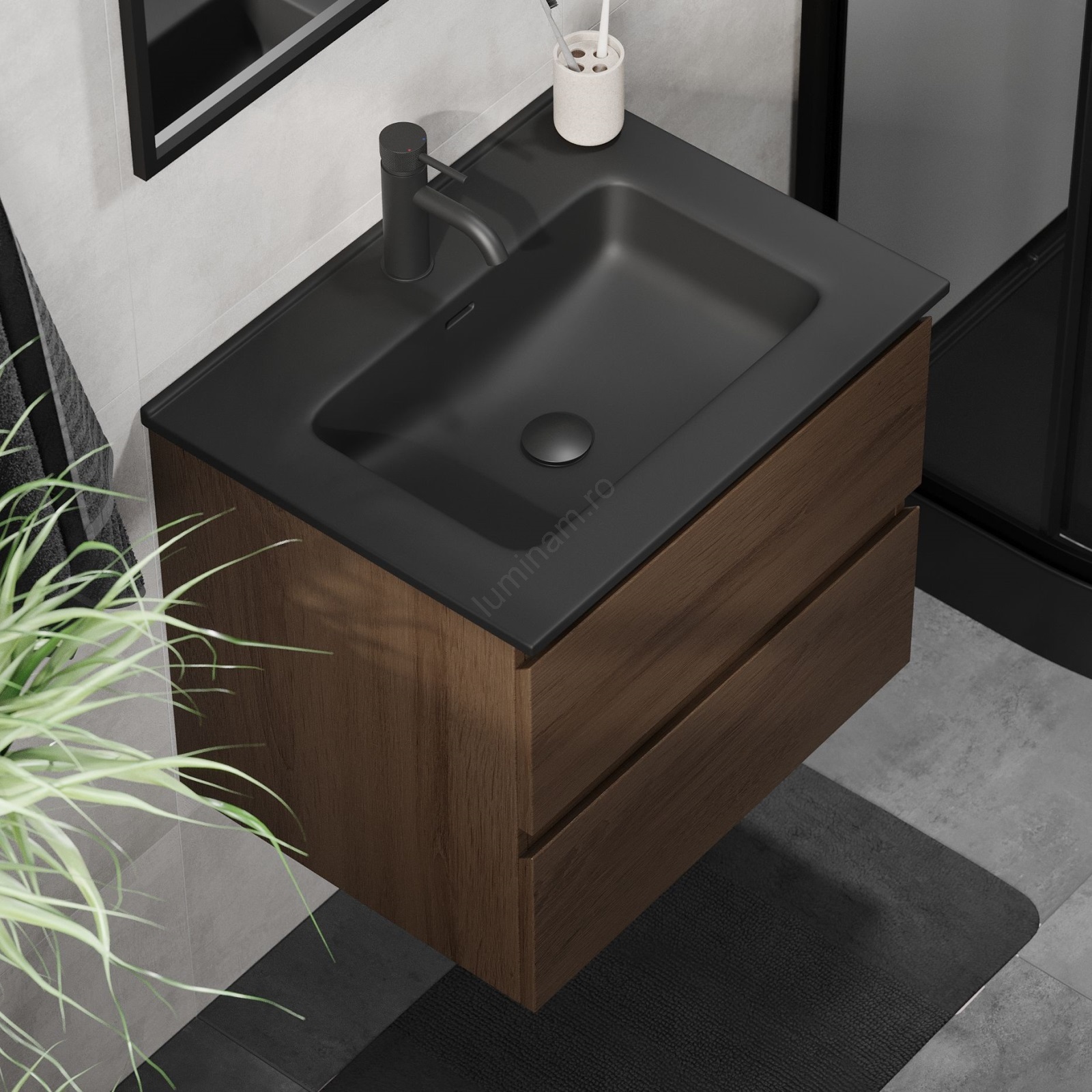 • Dulap de baie cu lavoar KENWOOD, 61 cm, finisaj Marakesh/negru