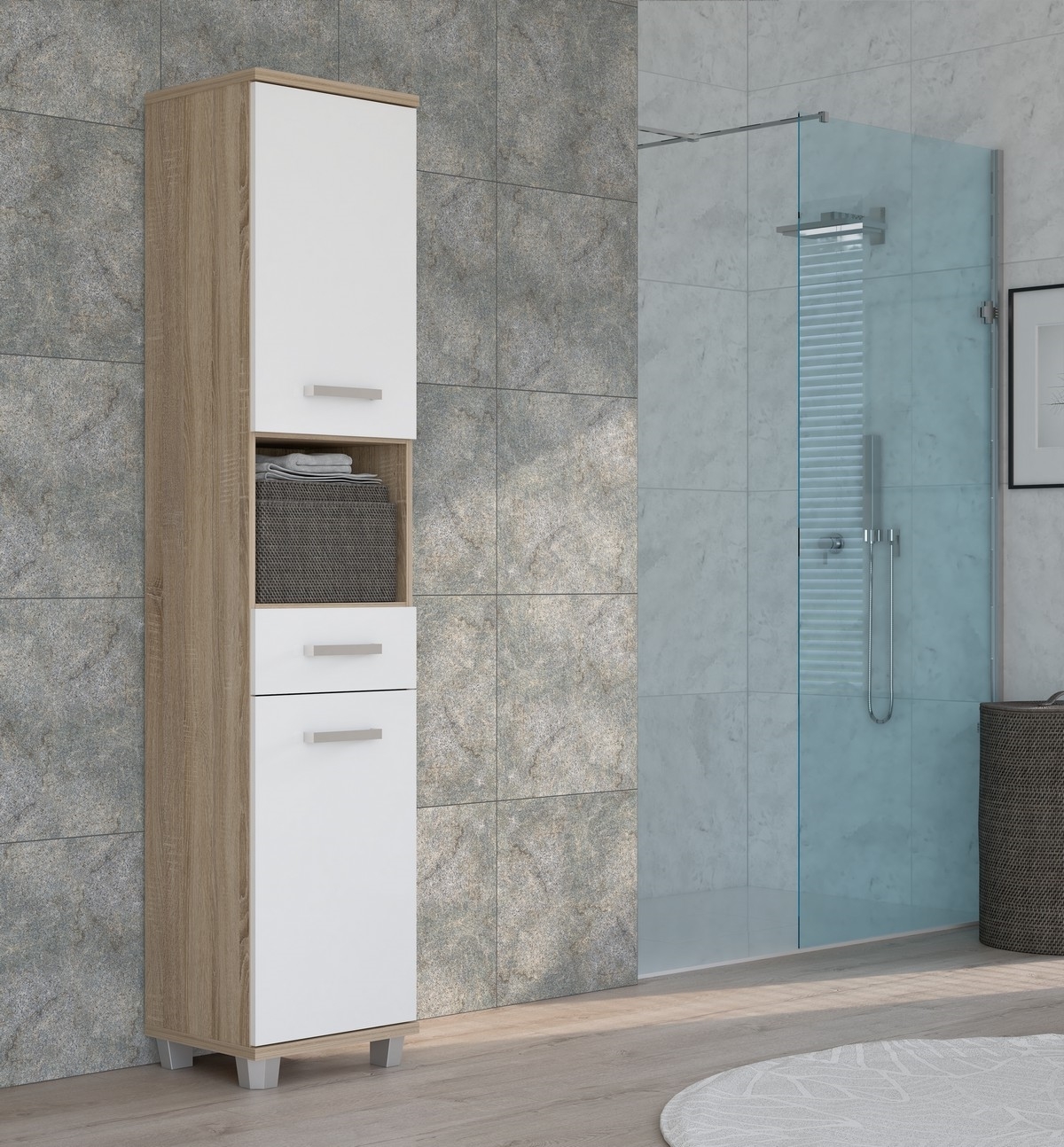 Dulap pentru baie VENOM, alb/stejar Sonoma
